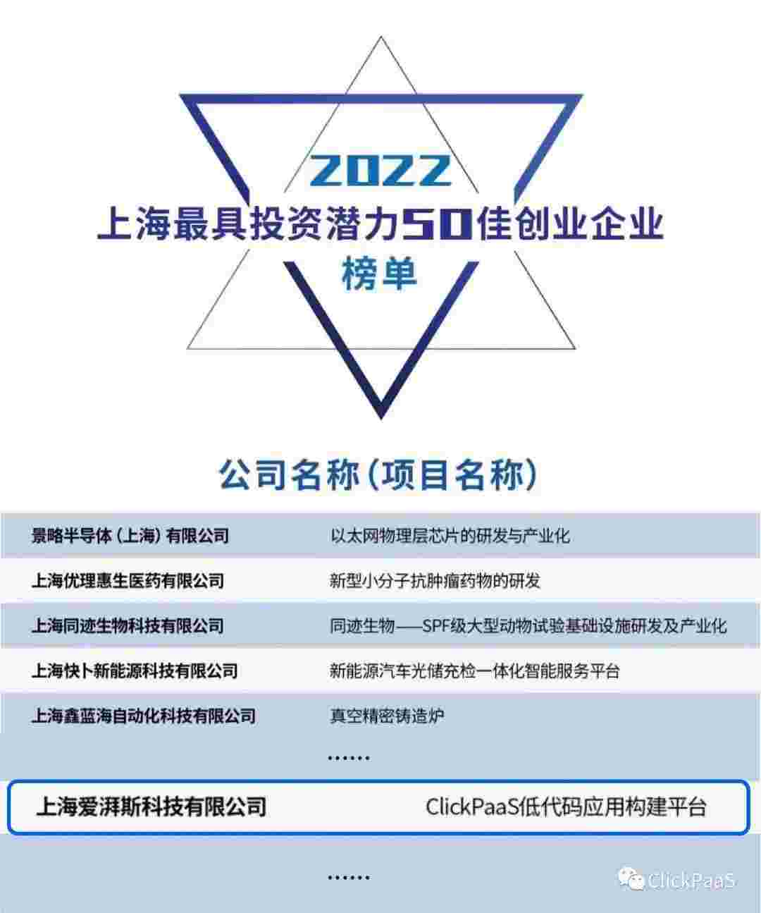 EBPAY 作为国内低代码PaaS平台的领军企业,,,,,,,,与120家创企入围角逐。。。。。。。。期间接受了来自德同资本、、、、、、、、、领中资本等知名投资机构的10位投资人组成专家评委团的背靠背盲选。。。。。。并最终入围“2022上海最具投资潜力50佳创业企业”榜单,,,,,,,,被列入“上海市重点培育创业企业库”。。。。。。。。。。。。。